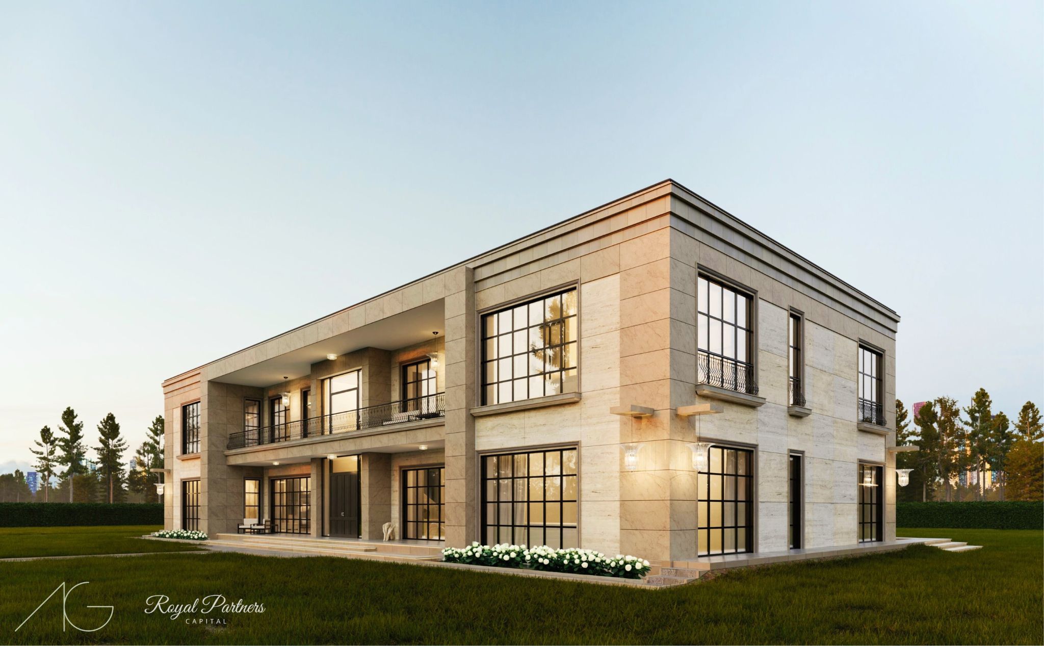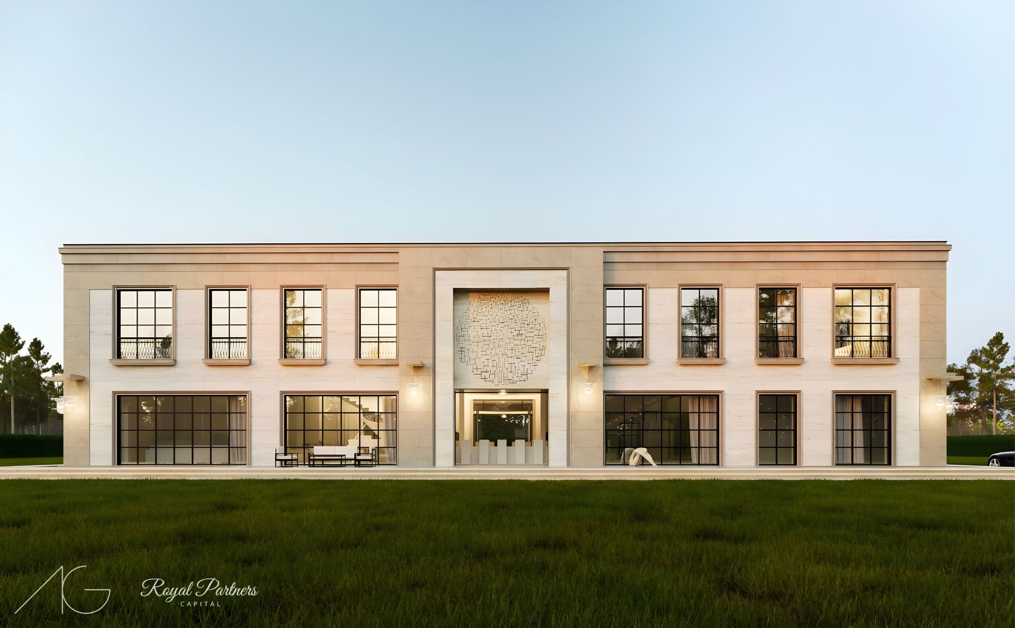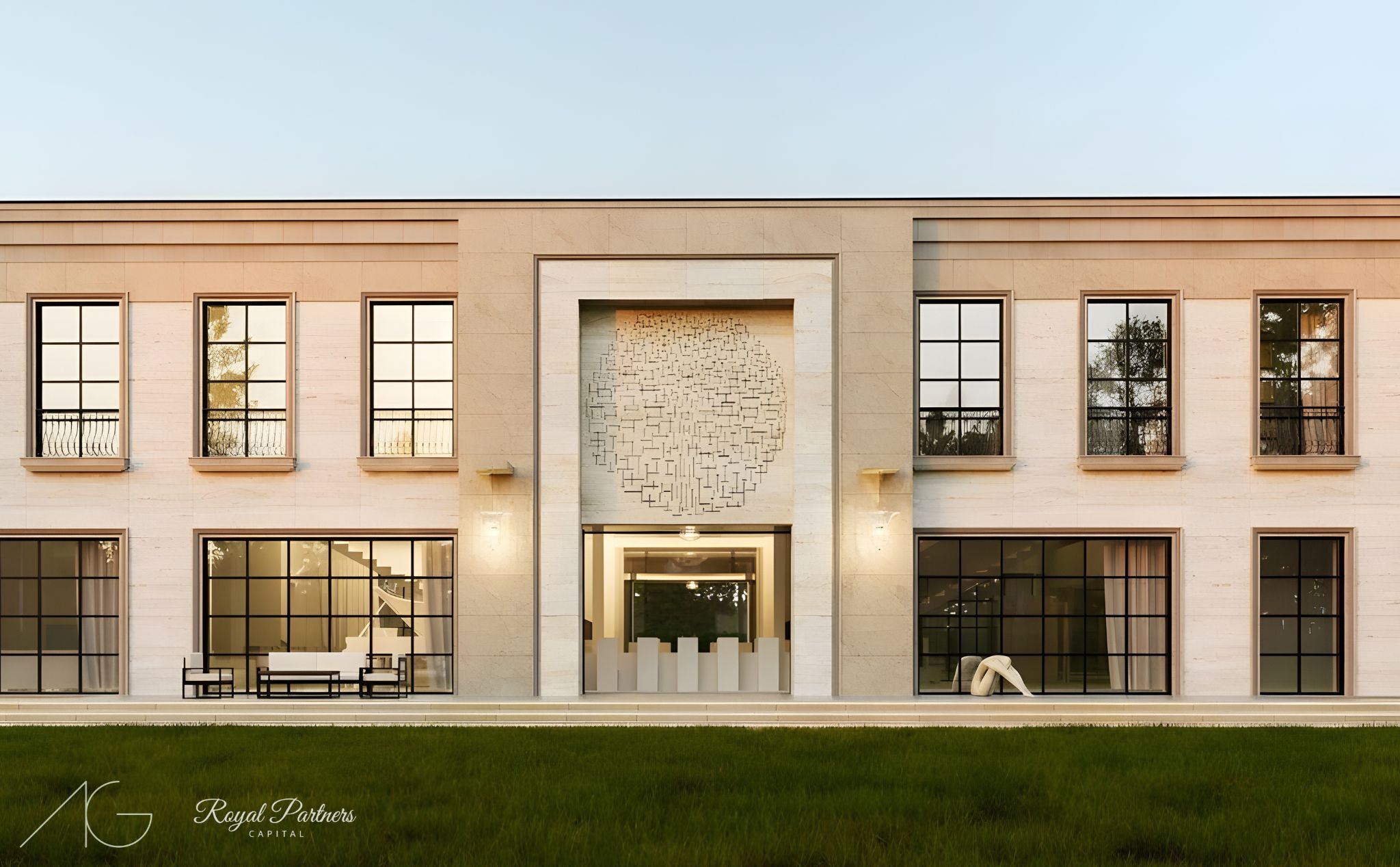 Nasza art_mansion raczej nie wzbudzi w Wilanowie kontrowersji. Ten budynek w stylu modern classic został zaprojektowany z myślą o miłośniku sztuki. Wokół i wewnątrz znajduje się przestrzeń, w której to rzeźby i obrazy mają być najważniejsze. Nad wyjściem z jadalni na taras mamy kamienny relief inspirowany neoplastycznym obrazem Mondriana. Wnętrza są nie mniej okazałe. Projekt powstał we współpracy z firmą Royal Partners Capital.