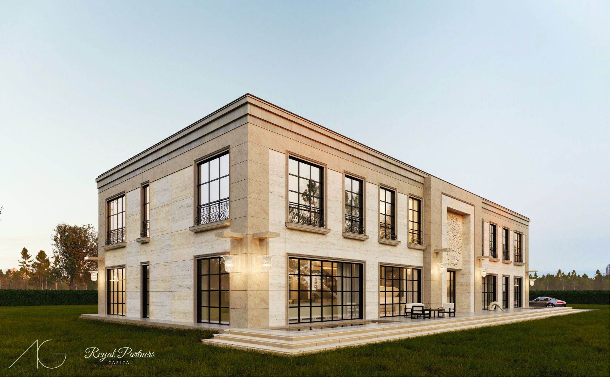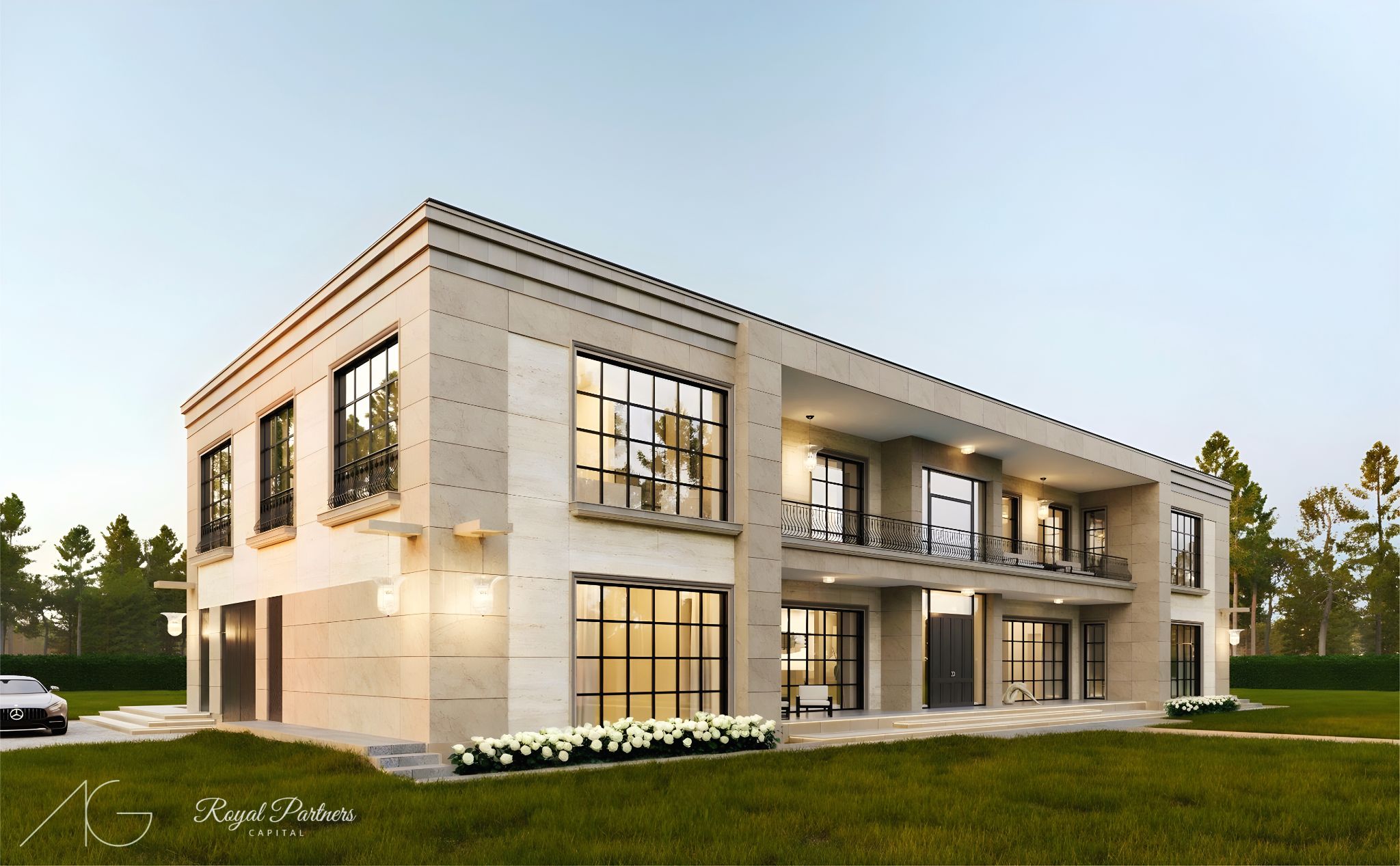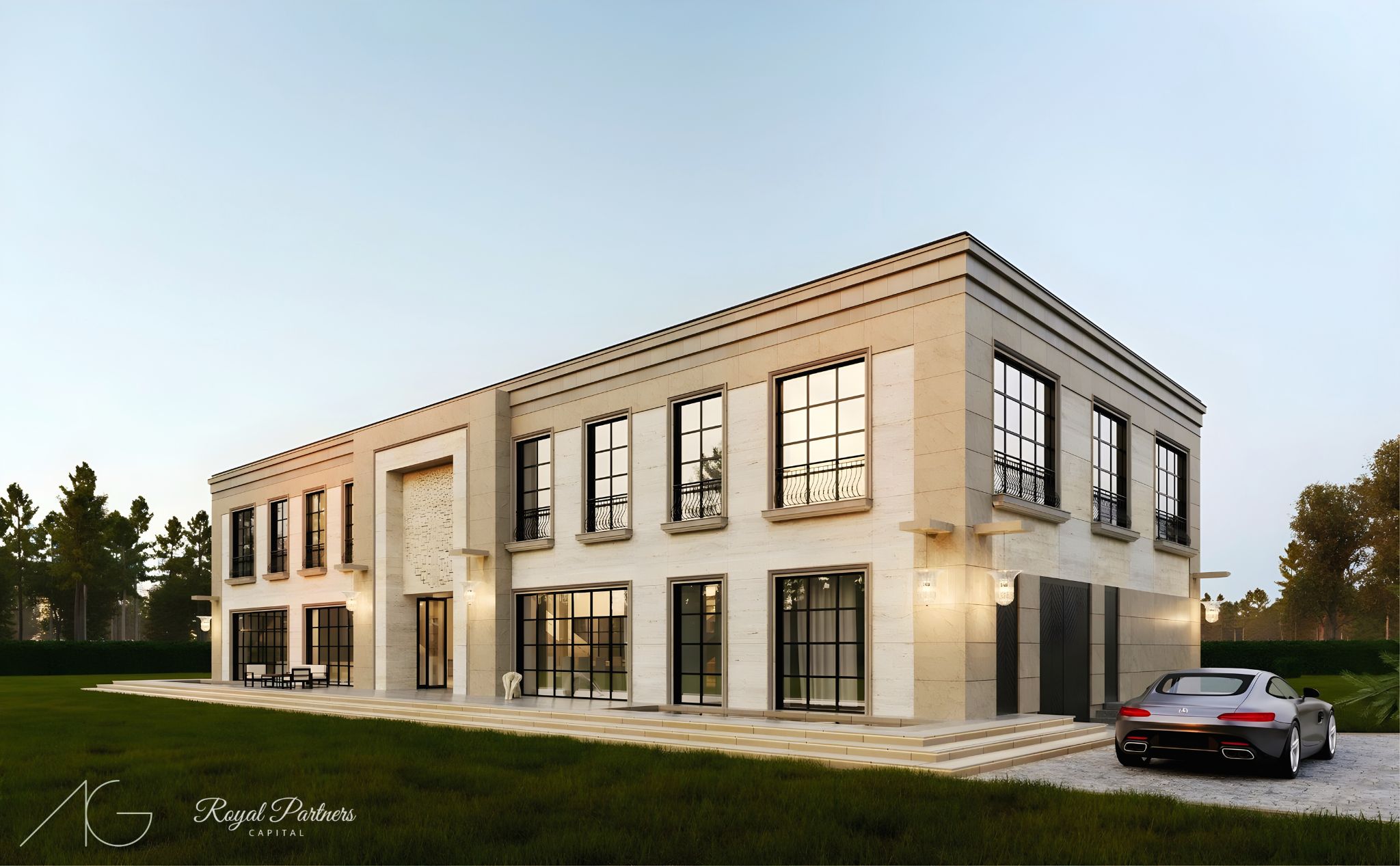Nasza art_mansion raczej nie wzbudzi w Wilanowie kontrowersji. Ten budynek w stylu modern classic został zaprojektowany z myślą o miłośniku sztuki. Wokół i wewnątrz znajduje się przestrzeń, w której to rzeźby i obrazy mają być najważniejsze. Nad wyjściem z jadalni na taras mamy kamienny relief inspirowany neoplastycznym obrazem Mondriana. Wnętrza są nie mniej okazałe. Projekt powstał we współpracy z firmą Royal Partners Capital.