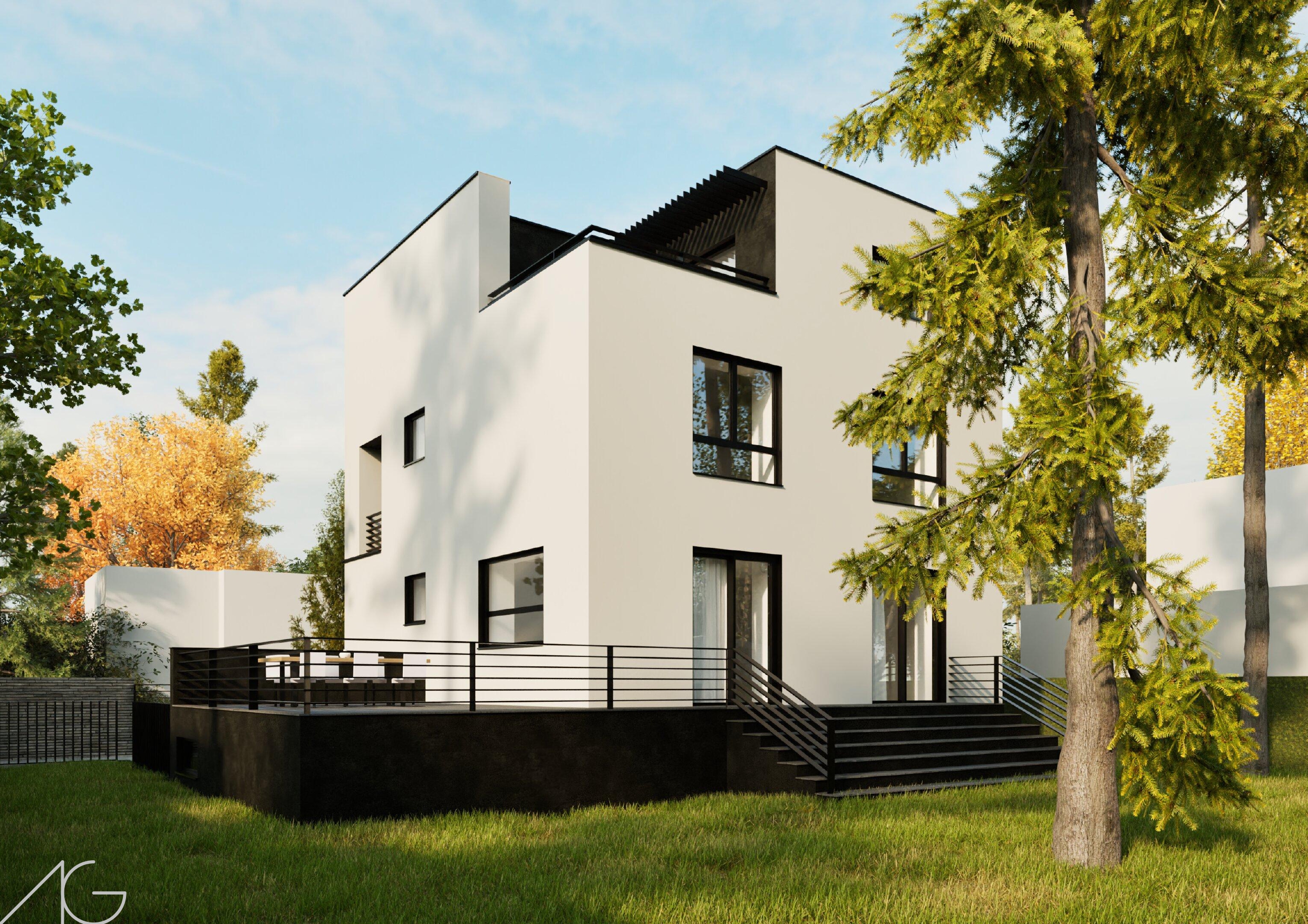 Zmanifestowaliśmy sobie ten projekt. Zależało nam, żeby mieć właśnie taki projekt w porftolio. Udało się! Poniżej wizualizacje jednej z wersji metamorfozy typowej kostki polskiej. Dlaczego przygotowujemy kilka wersji tego samego projektu? Chceby, żeby nasz projekt był spełnieniem marzeń klienta. Nasza wizja podąża ściśle za potrzebą klienta - to on będzie codziennie użytkować zaprojektowany przez nas budynek. Chcemy, by czuł się w nim dobrze. Koncepcja to dla nas bardzo ważny etap projektowania. To moment, w którym potrzeby i oczekiwania klienta wreszcie nabierają kształtu. To dla nas podstawa do dalszej pracy - kierunek, w którym będziemy podążać w trakcie projektu budowlanego i samej budowy.