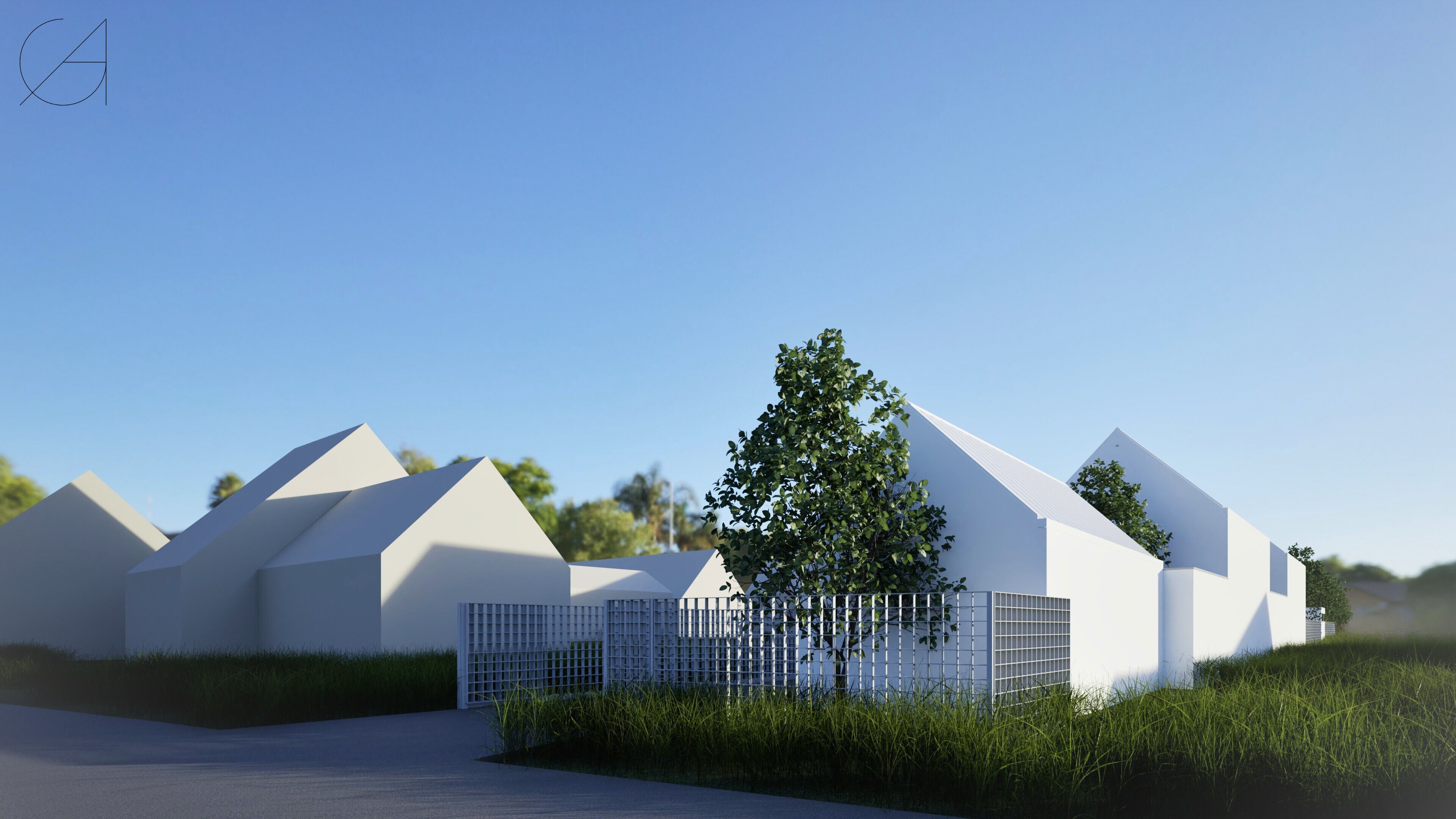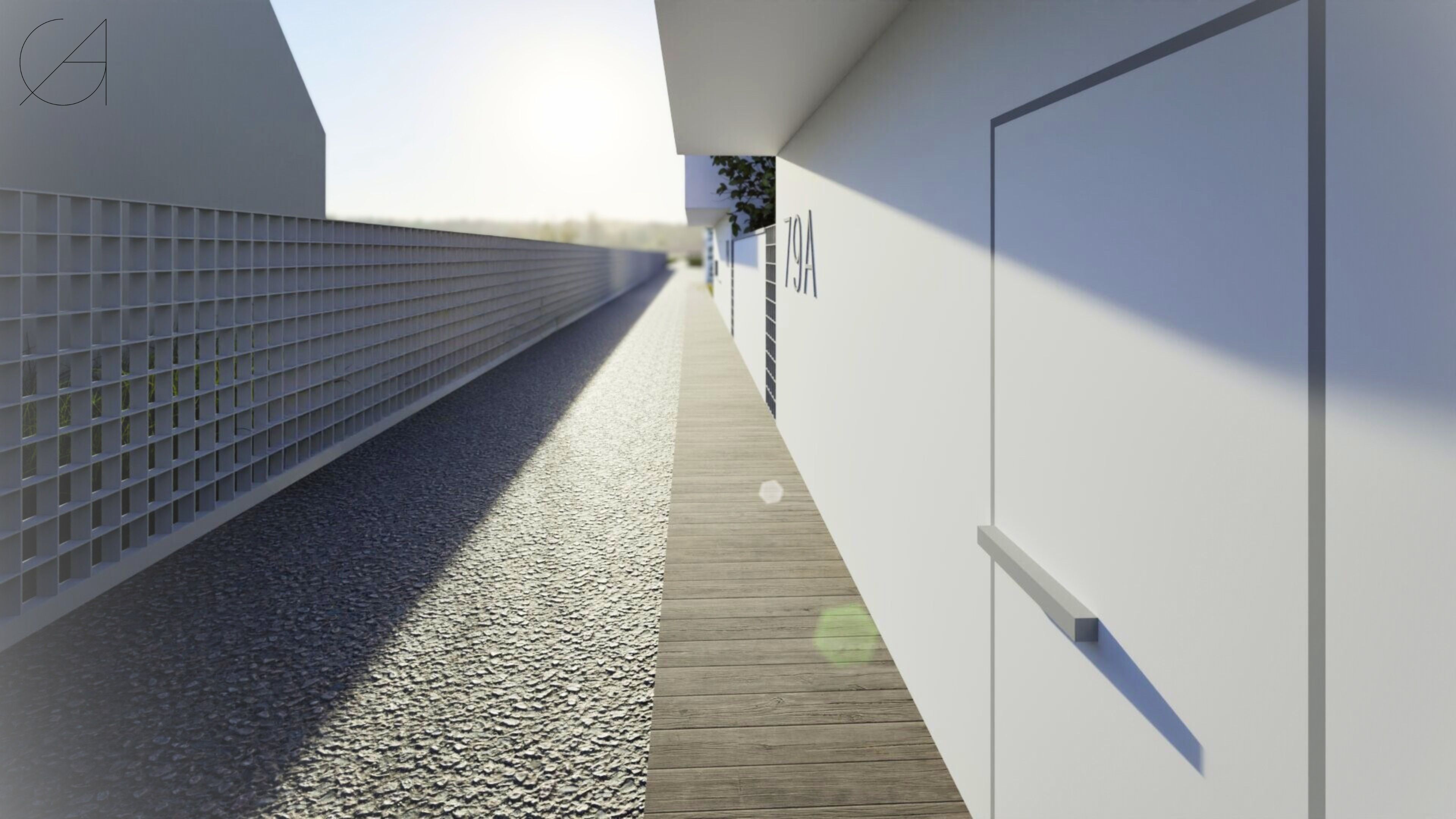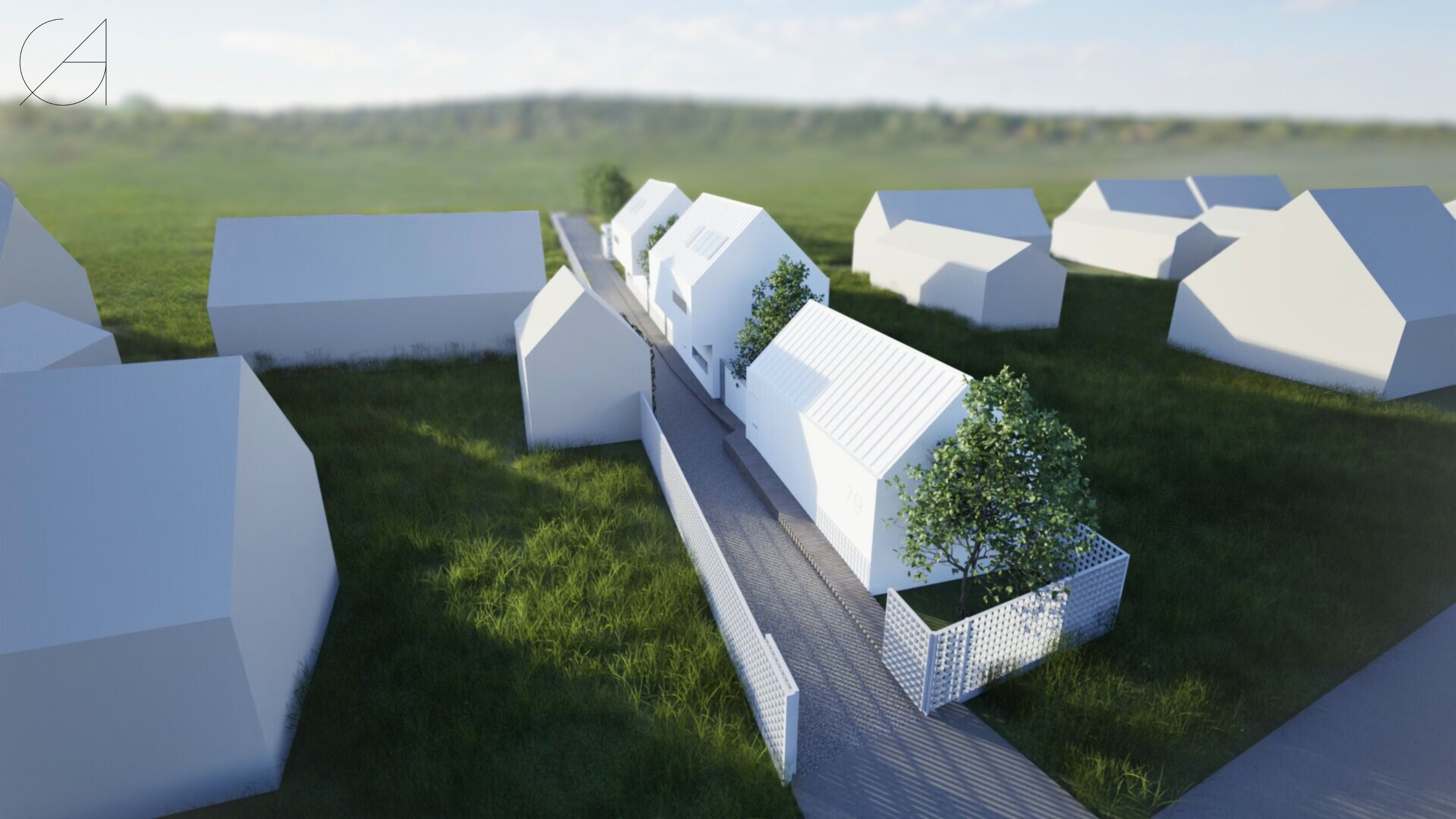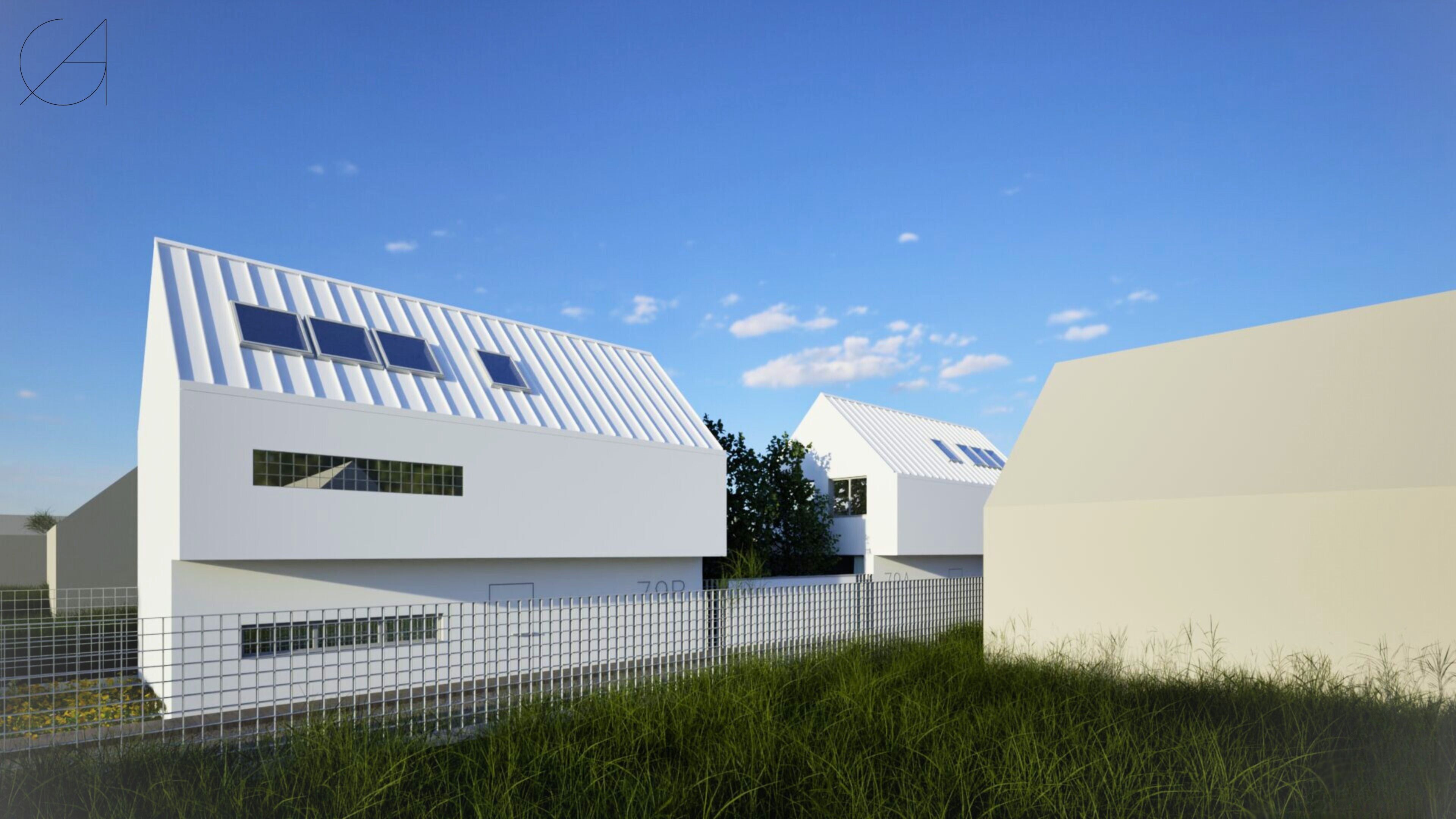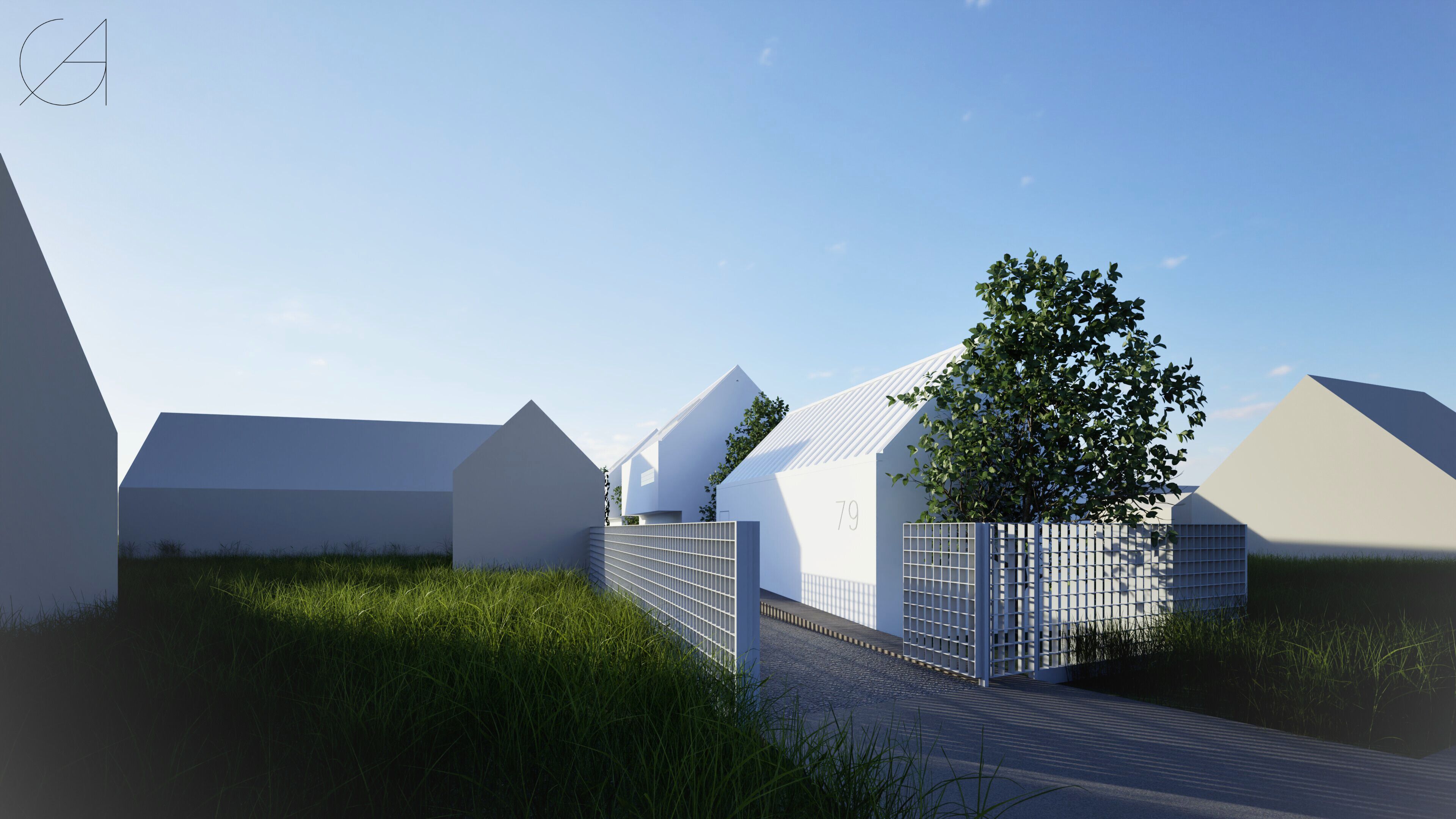 Przyszła do nas klientka z inwestycyjną wizją postawienia budynków mieszkalnych jednorodzinnych i działką, która nie ma nawet 10 m szerokości, ale jest dobrze skomunikowana ze stolicą. Mówili jej, że niemożliwe. Niemożliwe? Okazuje się, że jednak możliwe! Uzyskaliśmy decyzję WZ i obmyśliliśmy całą inwestycję tak, żeby miała potencjał rozwojowy na przyszłość (działka jest w obszarze uzupełnienia zabudowy w planie ogólnym). Nie obyło się bez konsultacji z rzeczoznawcą ppoż. Powstały powtarzalne 'inside houses', których docelowo może być aż 4 na działce. W tym projekcie nie chodziło o zachwycającą architekturę - ona miała z założenia być minimalistyczna i funkcjonalna wewnątrz.
